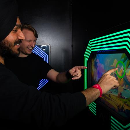 Scan features fast-paced games that require quick reflexes and precision. Players interact with touch screens and scan their RFID wristbands at the room hub to complete challenges and progress through levels.